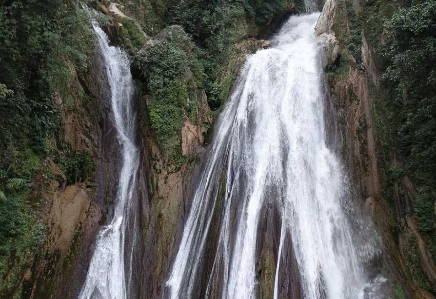 of the waterfall can be heard from a distance and after reaching there, one is simply left spellbound seeing the serene landscapes.